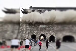 A torre foi construída em 1375, há 650 anos, sendo a maior torre de tambores existente na China, de acordo com a mídia local