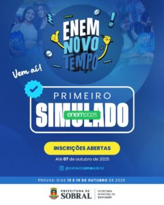 A Prefeitura de Sobral, por meio da Secretaria Municipal da Educação, realizará o 1º Simulado ENEM Novo Tempo, com o objetivo de proporcionar aos estudantes