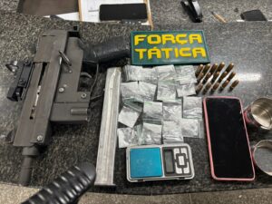 No imóvel do indivíduo, os policiais encontraram a arma de fogo, munições, cocaína e uma balança de precisão.