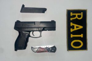 Durante a abordagem, os policiais encontraram em posse do homem um simulacro de pistola e um canivete.