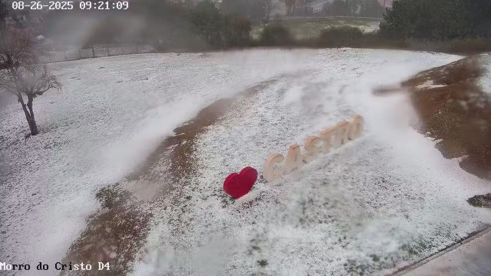 A cidade de Castro, nos Campos Gerais do Paraná, amanheceu nesta terça-feira (26) com um cenário inusitado: ruas e avenidas ficaram cobertas por uma espessa camada de gelo após uma intensa chuva de granizo. O fenômeno, registrado em vídeos por moradores, durou cerca de 20 minutos, mas foi suficiente para deixar a paisagem semelhante a de cidades onde neva.