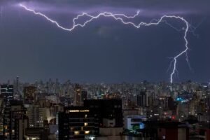 Em uma área mais restrita incluindo sul de Minas, centro-sul do Rio de Janeiro e boa parte de São Paulo o alerta é de “perigo de tempestade