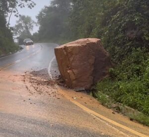 Diante do cenário, a orientação é que condutores redobrem a atenção, reduzam a velocidade e evitem paradas em áreas próximas às encostas.