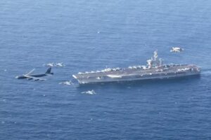 Segundo comunicado oficial, um caça F-35C, que decolou do porta-aviões USS Abraham Lincoln, realizou a interceptação