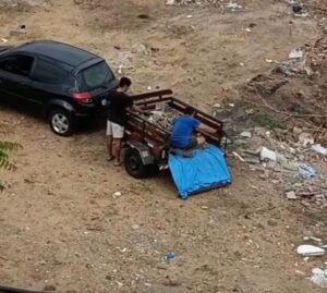 Moradores do bairro Domingos Olímpio, em Sobral, registraram em vídeo o momento em que dois homens jogam entulhos em um terreno da região. Nas imagens,