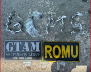 Os agentes patrulhavam a região quando localizaram pichações com referências a uma facção criminosa oriunda do Rio de Janeiro.
