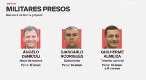 Foram presos o major da reserva Ângelo Denicoli, o subtenente Giancarlo Rodrigues e o tenente-coronel Guilherme Almeida.