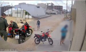 Câmera de segurança registrou agressão no bairro Farias Brito. Vítima relatou que episódios de violência eram frequentes há três anos.