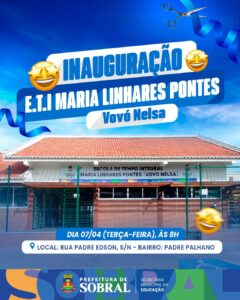 A inaguração da Escola de Tempo Integral Maria Linhares Pontes deverá acontecer na próxima terça-feira (7), e contará com a prtesença do prefeito Oscar Rodrigues e autoridades políticas da região.