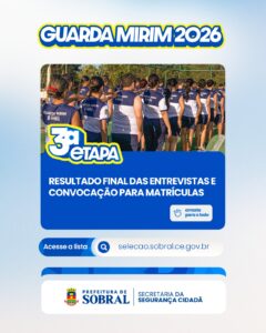A Secretaria da Segurança Cidadã da Prefeitura de Sobral, por meio da Coordenadoria da Cidadania e do Núcleo do Projeto Guarda Mirim, divulgou nesta terça-feira