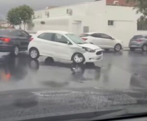 Um dos registros aconteceu nas imediações do Hospital Doutor Estevão, onde dois automóveis se envolveram em uma colisão durante o período chuvoso.