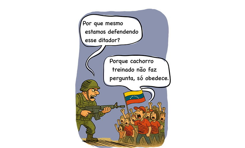 A movimentação de milhões de venezuelanos para a defesa do ditador Maduro, acuado pelas forças militares dos Estados Unidos dentro do seu próprio território, é uma das mais tristes manifestações da ignorância e falta de perspectiva de pessoas doutrinadas na forma mais rude e desprezível atribuída aos seres humanos. Talvez a doutrinação não seja o ato ideal, à caracterização desses personagens anônimos, e sim o adestramento.