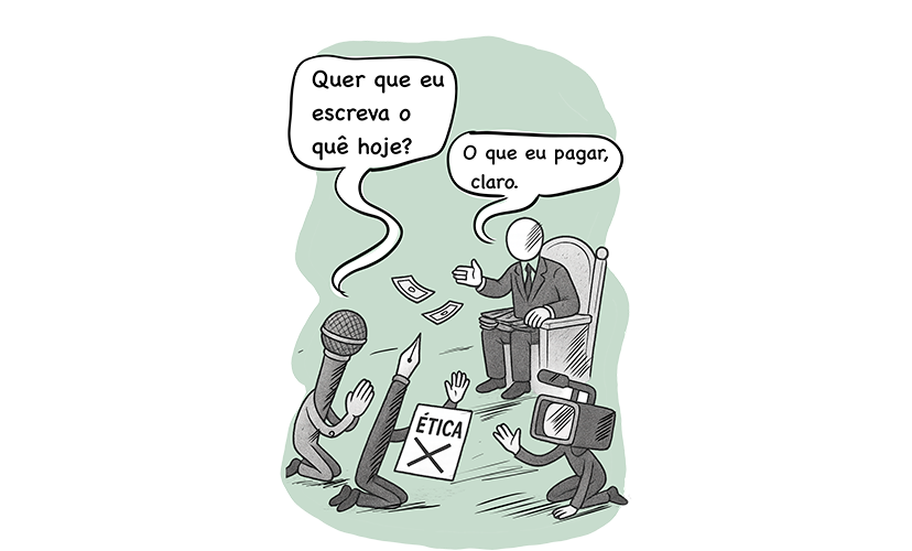 Já não nos causa espanto, mas sim tristeza, a postura de elementos da imprensa mudando o discurso da noite para o dia, simplesmente porque foi pago para tal. Aos que pagam toda honra e toda glória; já aos que se recusam a pagar, o escracho, a retaliação e a perseguição imoral que objetiva a destruição da dignidade alheia. Tal fato é público, notório e sistemático, em se tratando de complexos de comunicação comprometidos com a política partidária ou qualquer outros sistema dominante.