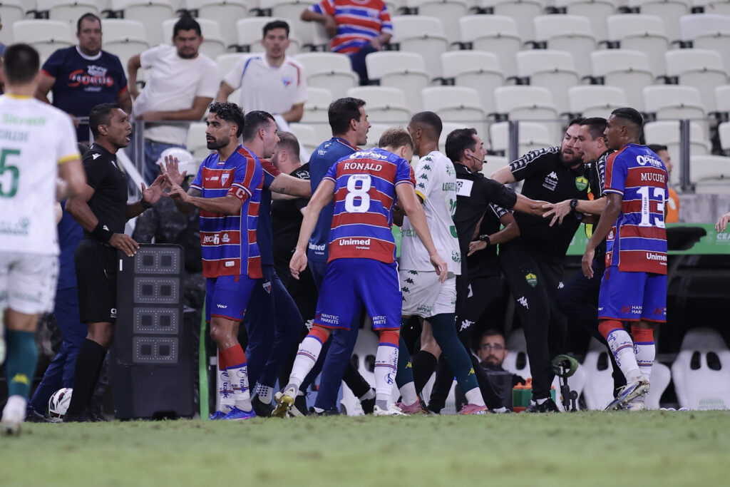 No segundo tempo, o ritmo caiu e as oportunidades foram escassas. Aos 15 minutos, uma confusão generalizada entre as comissões técnicas resultou na expulsão dos treinadores Thiago Carpini e Eduardo Barros, após troca de empurrões dentro e fora de campo. Com a bola rolando novamente, o Fortaleza tentou pressionar. Aos 22, Lucas Crispim finalizou por cima do travessão. A melhor chance veio aos 30 minutos, quando Crispim cobrou falta e Miritello cabeceou para defesa de Carné.