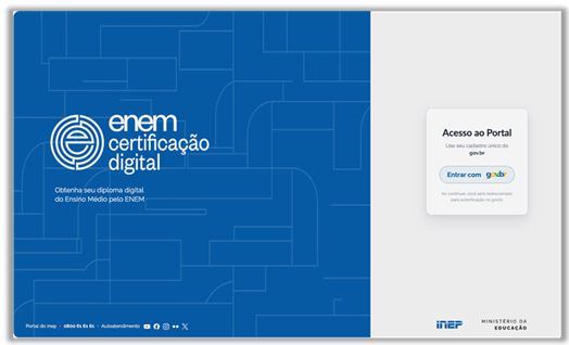 1. Acessar o site certificacaodigital.inep.gov.br e informar os dados da conta Gov.br;