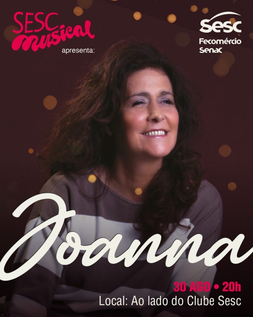 Sobral recebe, no sábado, 30 de agosto de 2025, um espetáculo especial com a cantora Joanna, ícone da música romântica brasileira dos anos 1980 e 1990. O show acontece no Sesc Sobral, a partir das 20h, prometendo encantar fãs de todas as gerações.