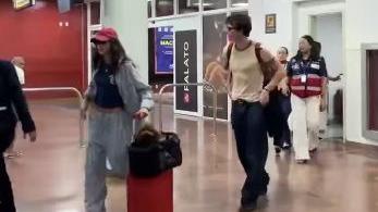 Vídeos compartilhados nas redes sociais mostram o cantor canadense atendendo a pedidos de fotos de um grupo de jovens antes de deixar o saguão. Enquanto isso, a atriz seguiu alguns passos à frente, puxando a mala e usando boné e óculos escuros.