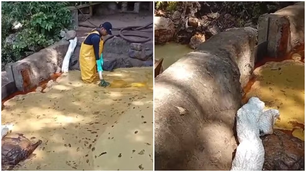 O vazamento de óleo se espalhou rapidamente pela pista e pelo entorno, descendo pela encosta e atingindo uma nascente. Imagens feitas por moradores mostram o líquido acumulado nas pedras e nos arredores da queda d’água, afetando diretamente o córrego que nasce no ponto da cachoeira.