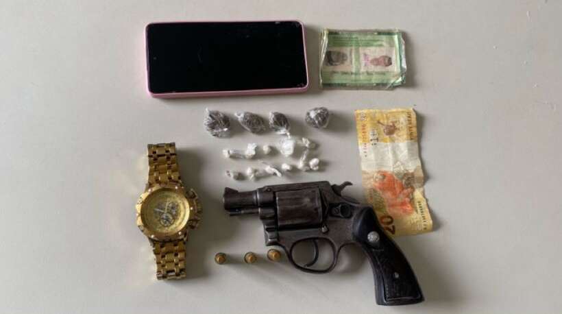 Durante as buscas, foram apreendidos um revólver calibre .38 com três munições deflagradas, além de papelotes de crack e maconha.