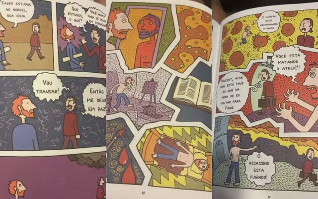 Os pais de estudantes se revoltaram porque o livro traz quadrinhos com temas como surtos psicóticos, sexo e visitas a bordéis. As imagens mostram momentos da vida do artista marcados por crises emocionais, dificuldades financeiras e conflitos pessoais.