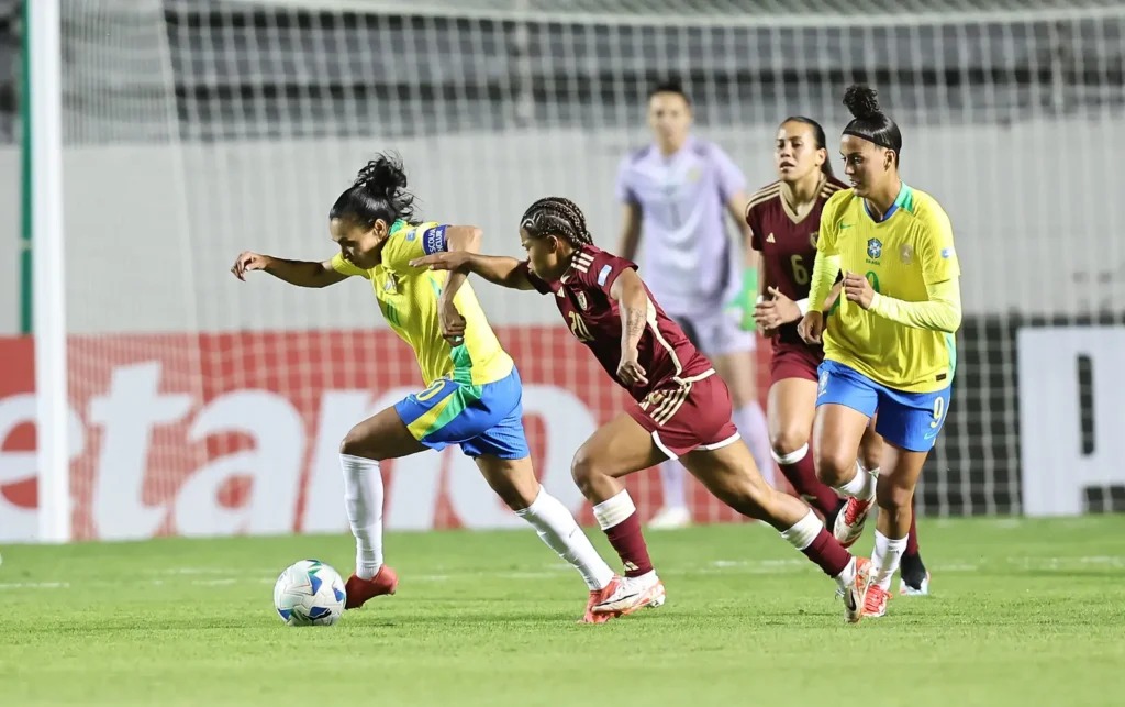 As comandadas de Arthur Elias, naturalmente, têm 3 pontos e estão em segundo no Grupo B, atrás do Paraguai pelo saldo de gols: 4 a 2. Cada grupo, inclusive, tem cinco times. O Brasil encara ainda a Bolívia (16), Paraguai (22) e Colômbia (25). Os dois melhores de cada lugar avançam para a semifinal.  A grande decisão está agendada para o dia 2/8.