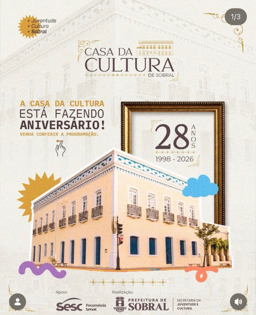 A Casa da Cultura de Sobral comemora seus 28 anos de história com uma programação especial preparada para reunir diferentes expressões artísticas e atrair públicos de todas as idades ao longo do mês.